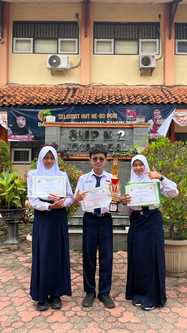 Prestasi yang diraih ini diharapkan dapat menjadi penyemangat bagi seluruh siswa SMP Negeri 2 Kota Tegal untuk terus berusaha, berani bermimpi, dan tidak ragu menunjukkan kemampuan terbaiknya. Dengan semangat kebersamaan, kerja keras, dan disiplin, peserta didik diharapkan mampu meraih prestasi yang lebih tinggi serta mengharumkan nama sekolah di berbagai ajang kompetisi. Sekolah senantiasa berkomitmen untuk mendukung pengembangan bakat dan minat siswa agar tumbuh menjadi generasi yang berprestasi, berkarakter, dan siap menghadapi tantangan masa depan. (Rania Halwa Ramadhani )